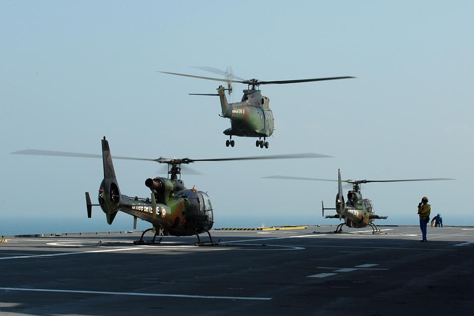 La marine nationale alignera le BPC Tonnerre qui a embarqué à La Rochelle des militaires de l’armée de terre avec leurs hélicoptères et leurs véhicules blindés.