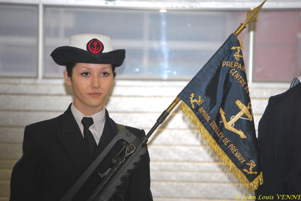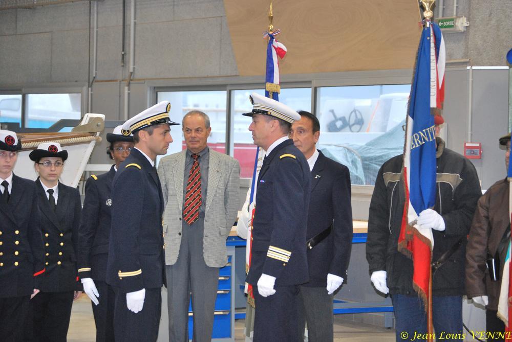 Prévue au départ devant le monument aux morts de La Seyne, en raison des conditions météorologiques détestables, la cérémonie de présentation au fanion s’est déroulée dans les locaux du centre PMM. Outre les familles, assistaient à cette cérémonie M. Marc Vuillemot, maire de la Seyne, l’amiral Turc, le CF Agneray et le CC Gloaguen, représentant du commandant du CIN St-Mandrier.