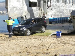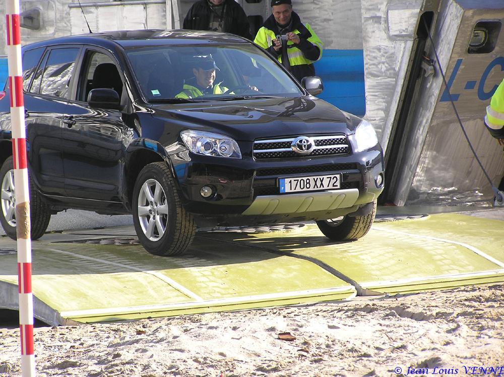 Pour la charge totale certifiée pour les premiers essais de plageage en charge, 26 tonnes pour le camion Trm 10000 avec les plots en béton, et 2 tonnes par 4x4. AU total, les essais ont donc été effectués avec 34 tonnes de fret. Les plageage et déplageage ont été uniquement effectués sur 2 moteurs de propulsion.