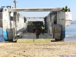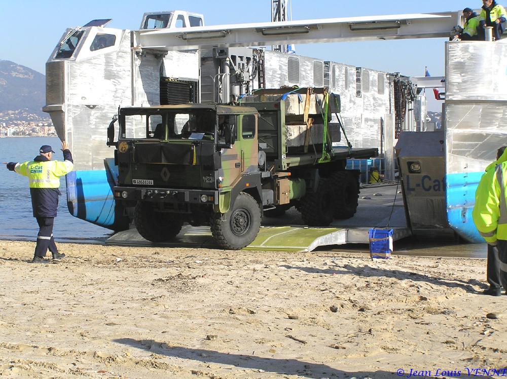 Le L-CAT, le prototype d’engin de débarquement développé par la CNIM et construit par les chantiers Gamelin, a effectué mardi ses premiers essais en charge. Il s’agissait d’embarquer (et de débarquer) des véhicules de la gamme utilitaire et tourisme (du type de ceux utilisés par les ONG) sur plage, sur rampes dans les ports et sur des quais de plus d’un mètre de hauteur.