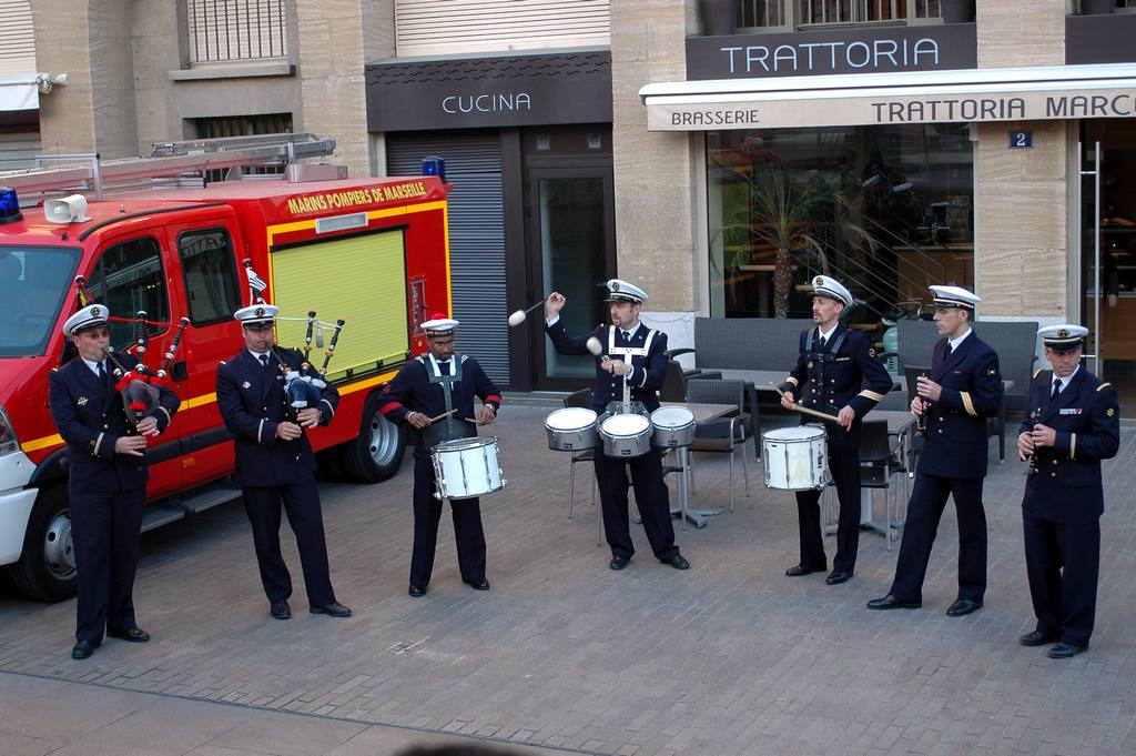 Le 26 mars dernier, le bagad du Centre d’Instruction Navale de St-Mandrier a participé aux cérémonies commémorant la création du bataillon des marins-pompiers de Marseille.