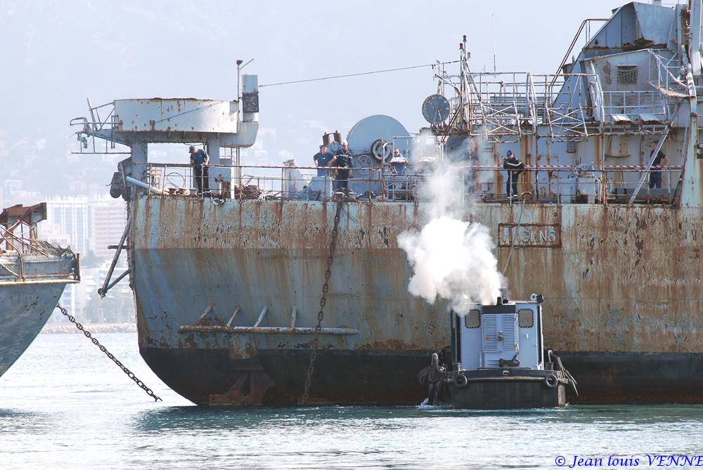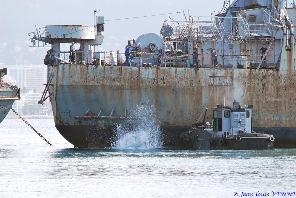 La coque de l’ex-Argens, un bâtiment de débarquement de chars construit en 1958 et désarmé en 1984, est arrivée ce mardi dans la base navale de Toulon.