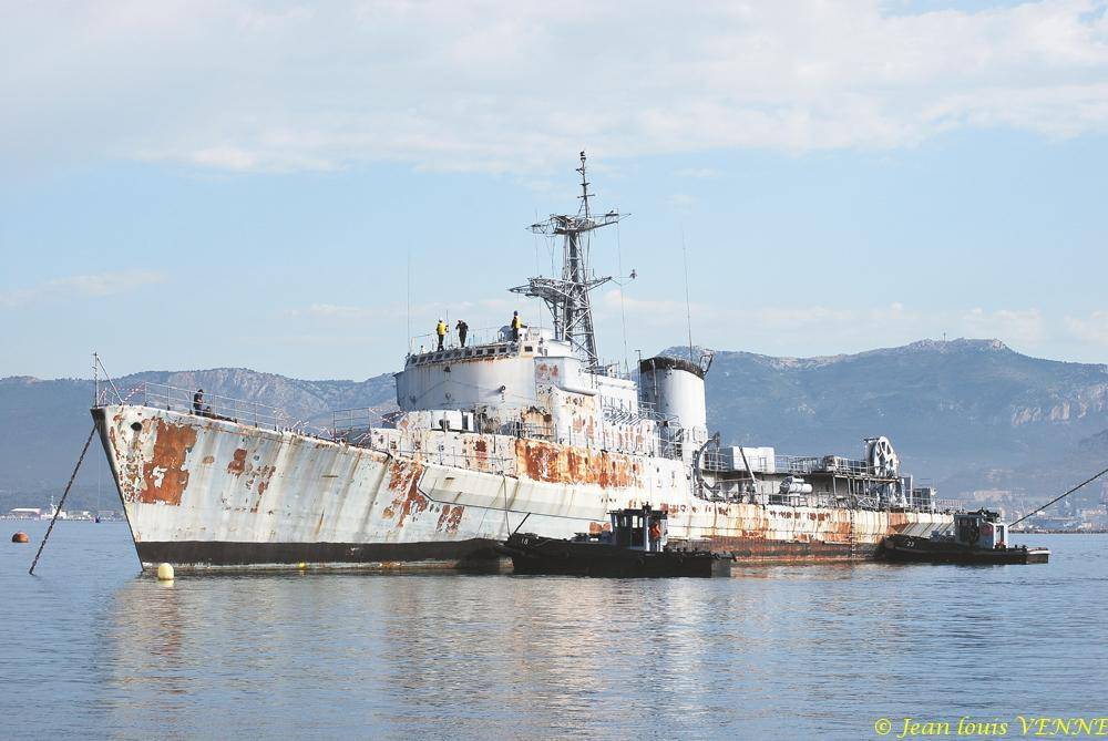 La coque de l’ex-aviso escorteur Commandant Rivière a été transférée mardi de Saint-Mandrier vers la base navale de Toulon. Elle y sera être préparée en vue de son démantèlement.