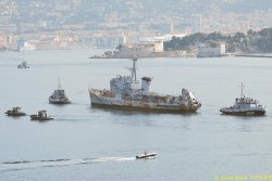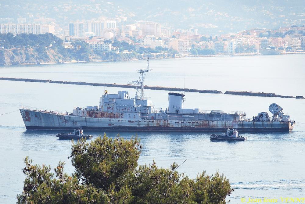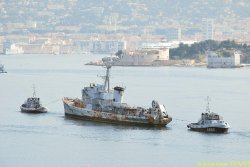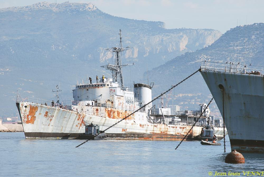 La coque de l’ex-aviso escorteur Commandant Rivière a été transférée mardi de Saint-Mandrier vers la base navale de Toulon. Elle y sera être préparée en vue de son démantèlement.