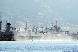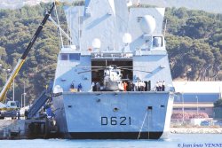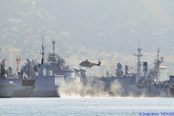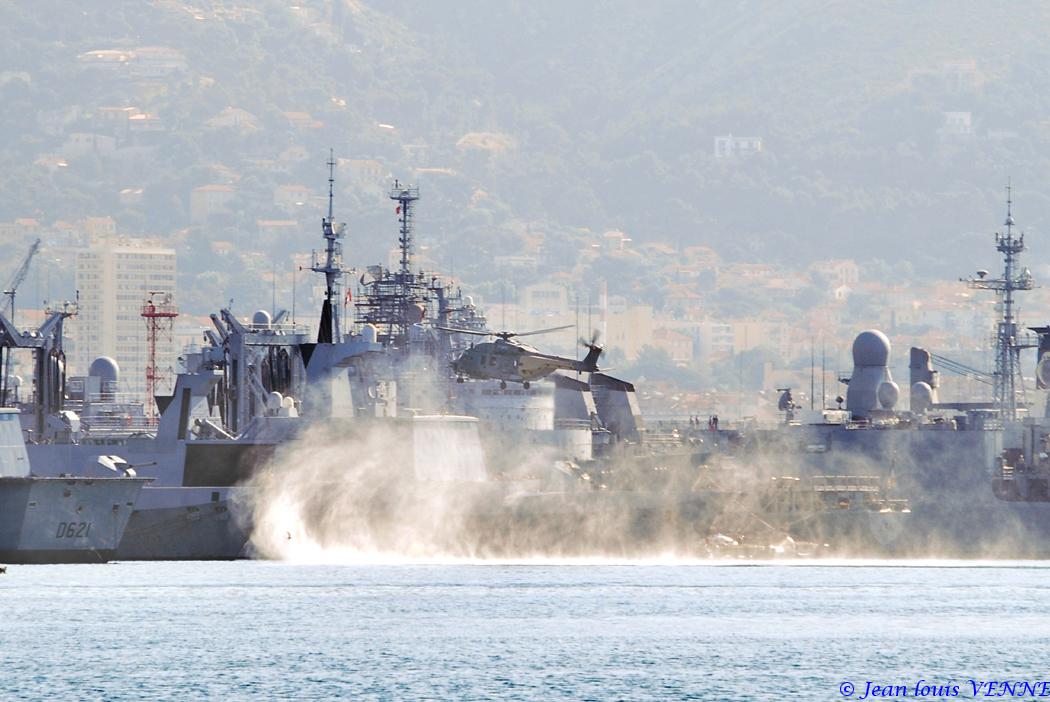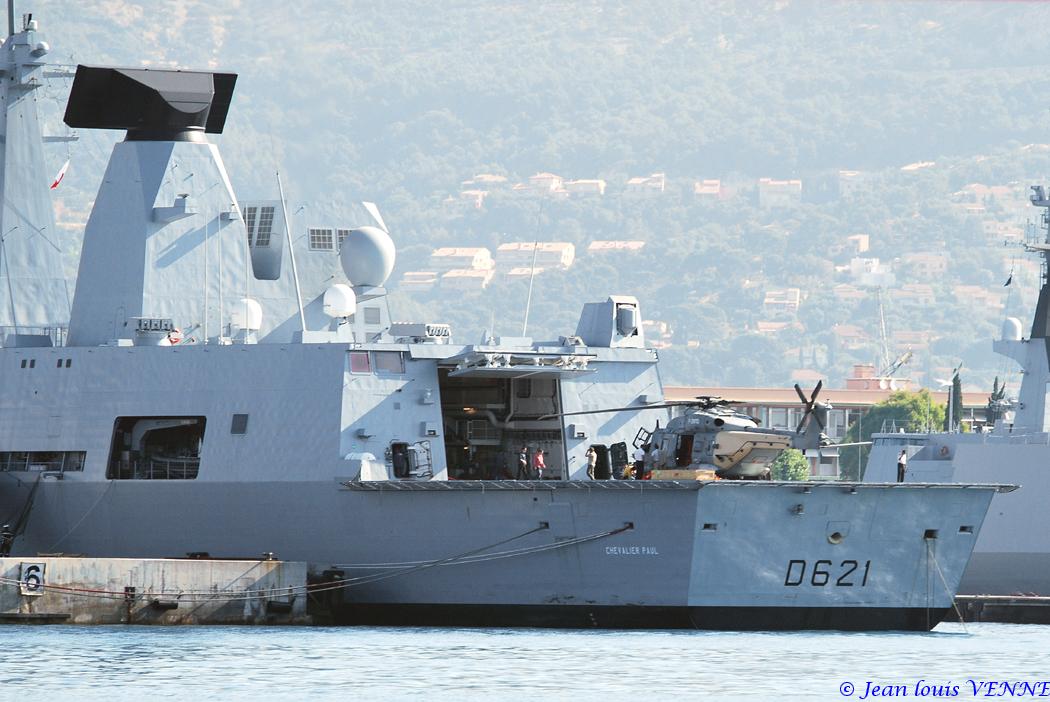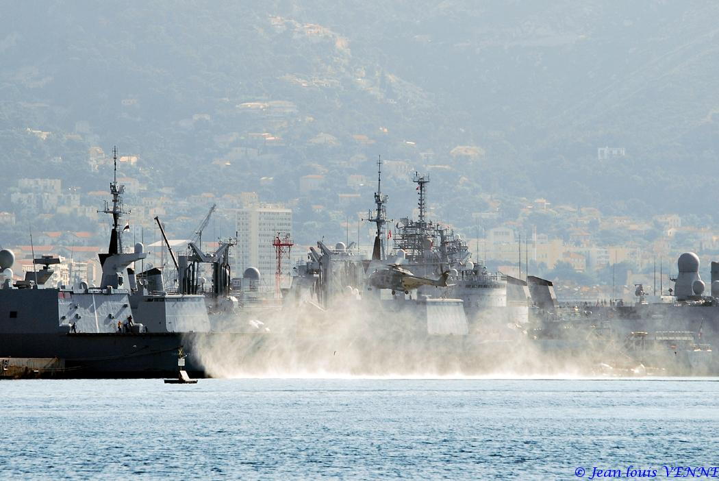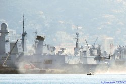 Jean-Louis Venne a pu saisir sur le vif une première : l’appontage d’un NH90 sur la frégate Chevalier-Paul. Il faut souligner qu’il est exceptionnel que des mouvements d’hélicoptère aient lieu à quai.