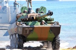 Voici des images prises par Jean-Louis Venne du débarquement des véhicules de l’armée de terre sur la plage de St-Aygulf à Fréjus.