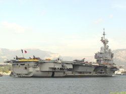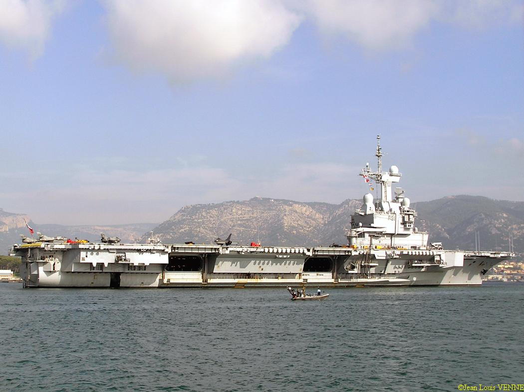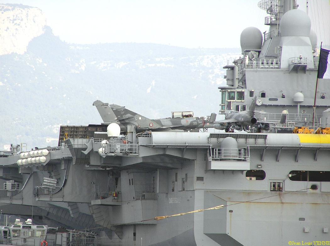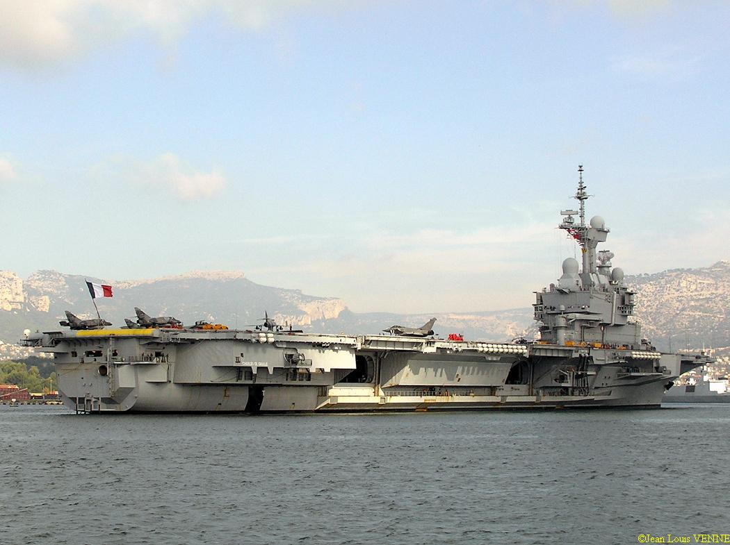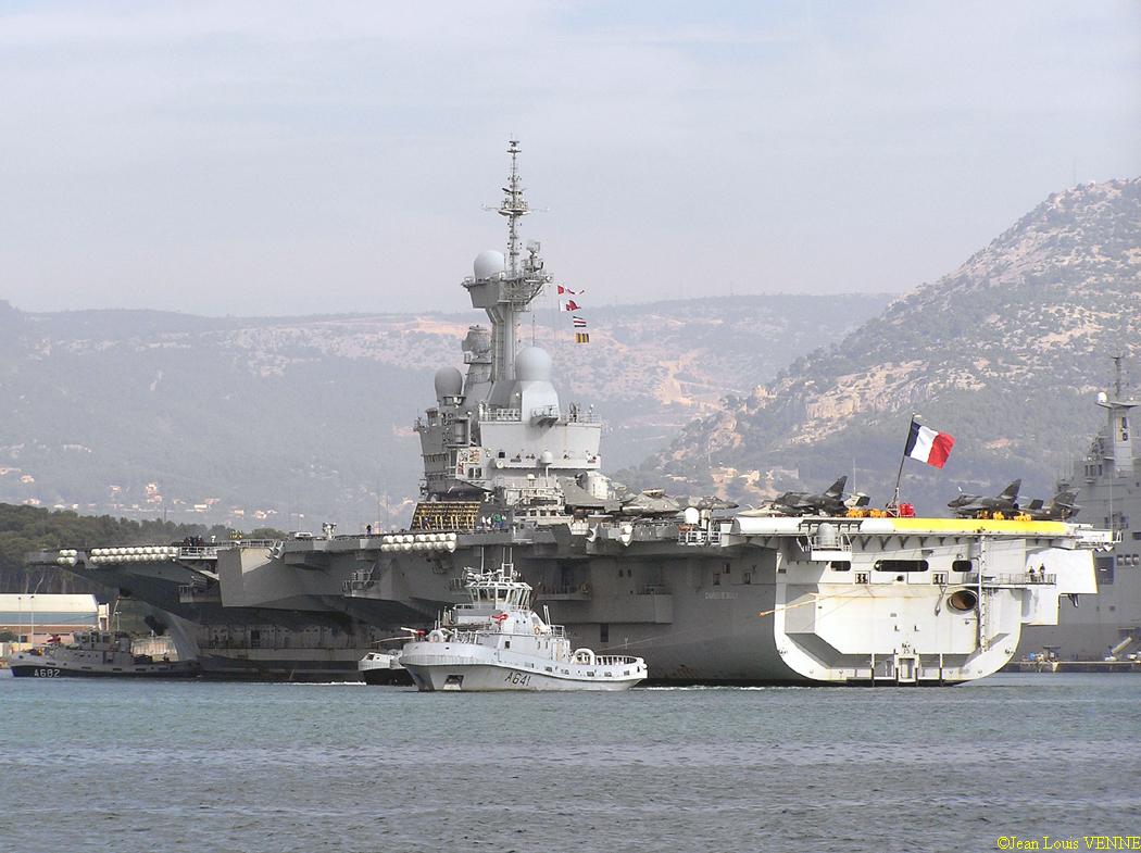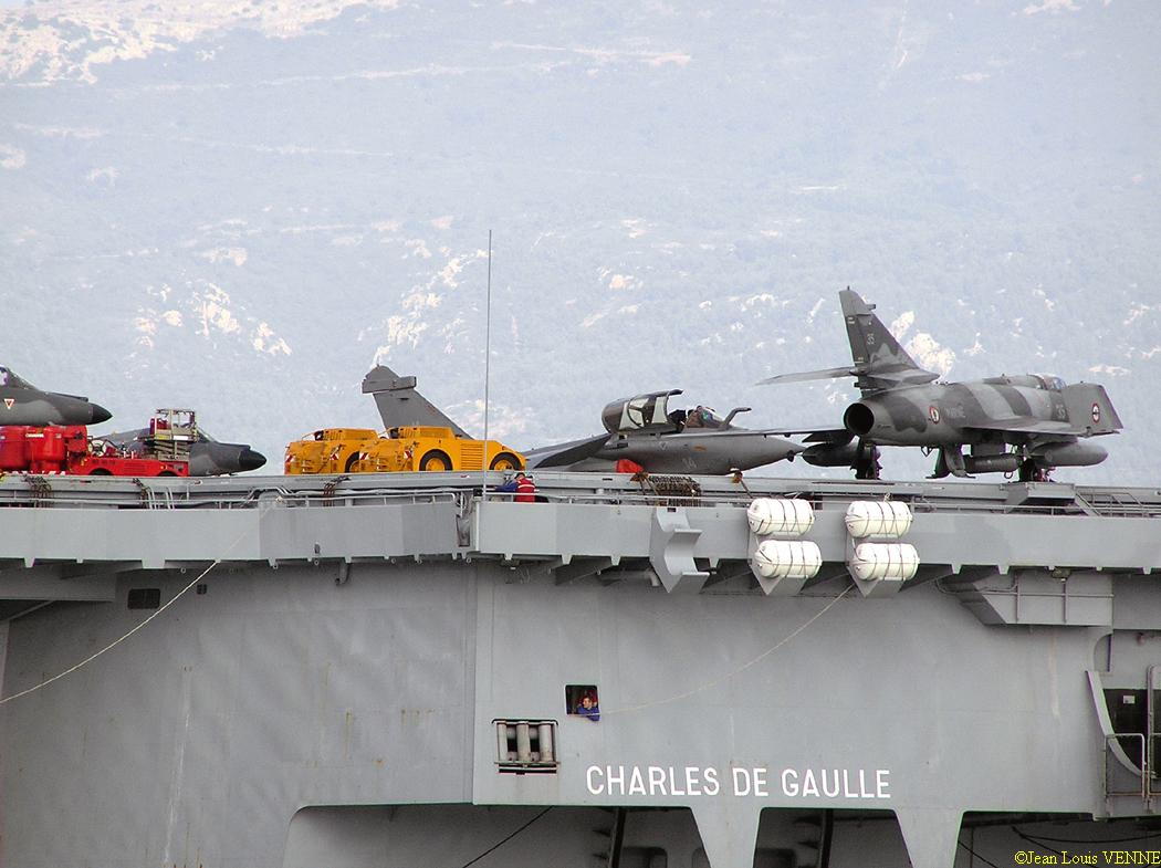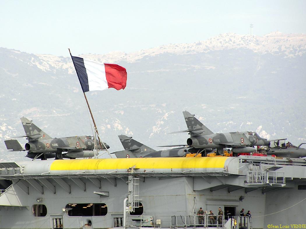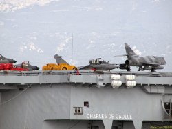 Voici des images d’un appareillage du porte-avions Charles de Gaulle. On peut voir sur le pont d’envol une partie des avions : Super-Etendard et Rafale.