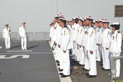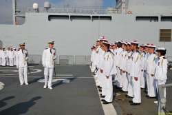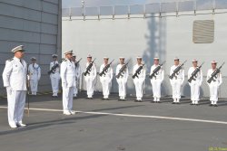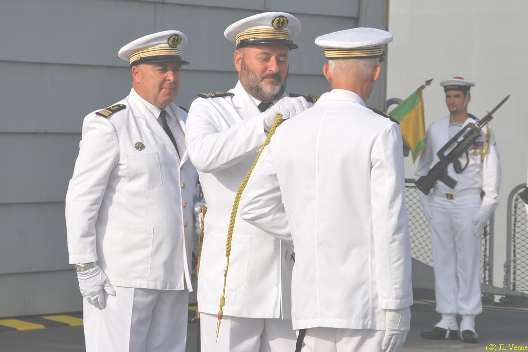 Première cérémonie à bord du bâtiment ravitailleur de forces Émile Bertin
