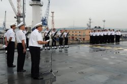 Première cérémonie à bord du bâtiment ravitailleur de forces Émile Bertin
