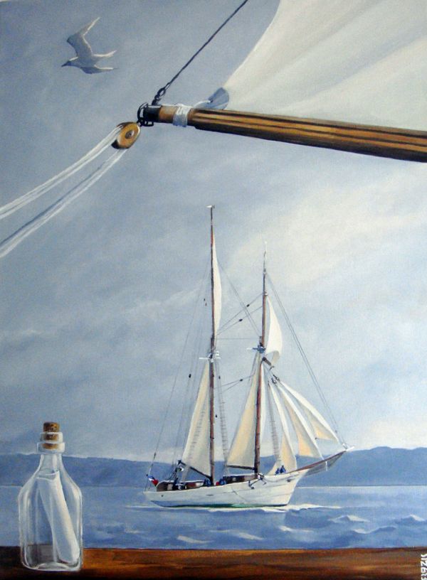 Lundi 27 septembre, Pierre-Arnaud Lebonnois, peintre portuaire, a remis au lieutenant de vaisseau Laurent, commandant de l’Etoile, sa toile intitulée "Une bouteille à la Mer".
