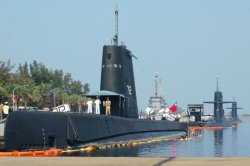 Un sous-marin de la classe Guppy (1er plan) en service depuis 66 ans et 2 sous-marins de la classe Hailung (arrière plan) en service depuis 25 ans.
