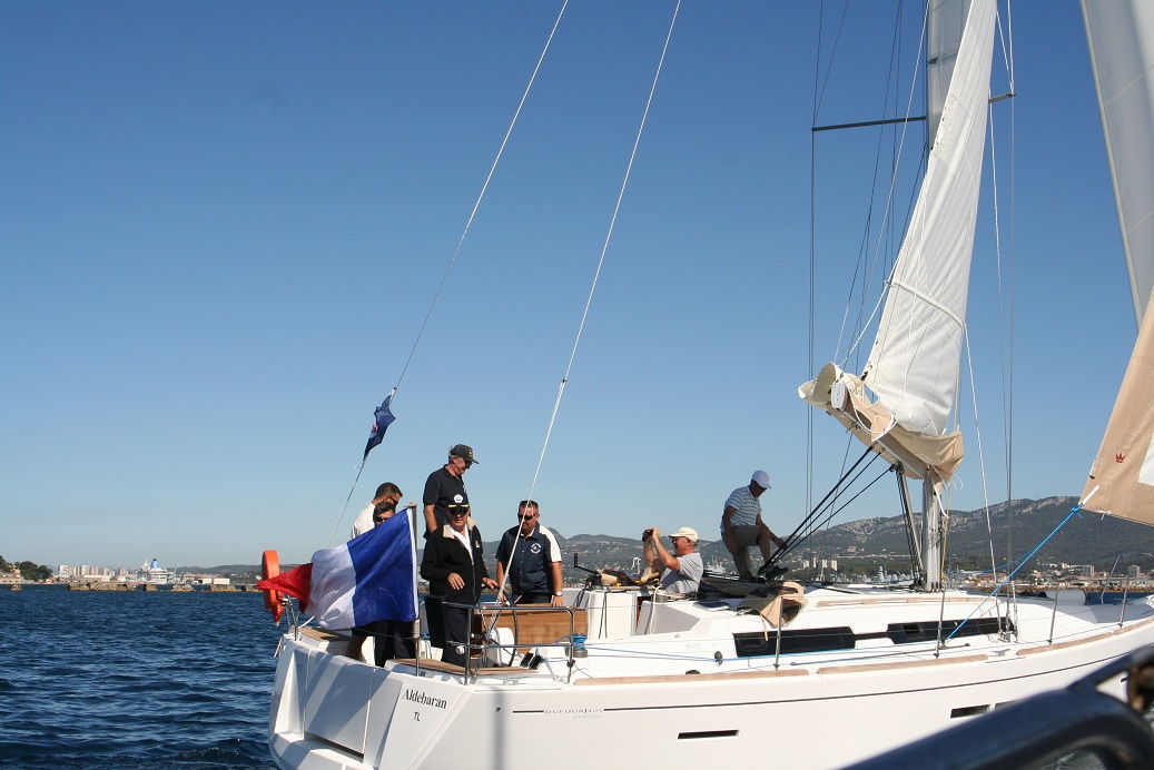 Les équipages ont été accueillis par leurs familles, par des membres du Club Nautique de la Marine à Toulon — dont leur président, l’amiral Pinon — et par le préfet maritime, le vice-amiral d’escadre Tainguy.