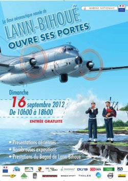 Le dimanche 16 septembre 2012 de 10h00 à 18h00, la base d’aéronautique navale de Lann-Bihoué, dans le Morbihan, organise une journée « portes ouvertes ». Cette manifestation répond à la volonté de la Marine nationale de mieux faire connaître l’une de ses composantes essentielles : l’Aéronautique navale. Le public pourra ainsi accéder librement et gratuitement au site jusqu’à 16h45, moment où se feront les dernières entrées.