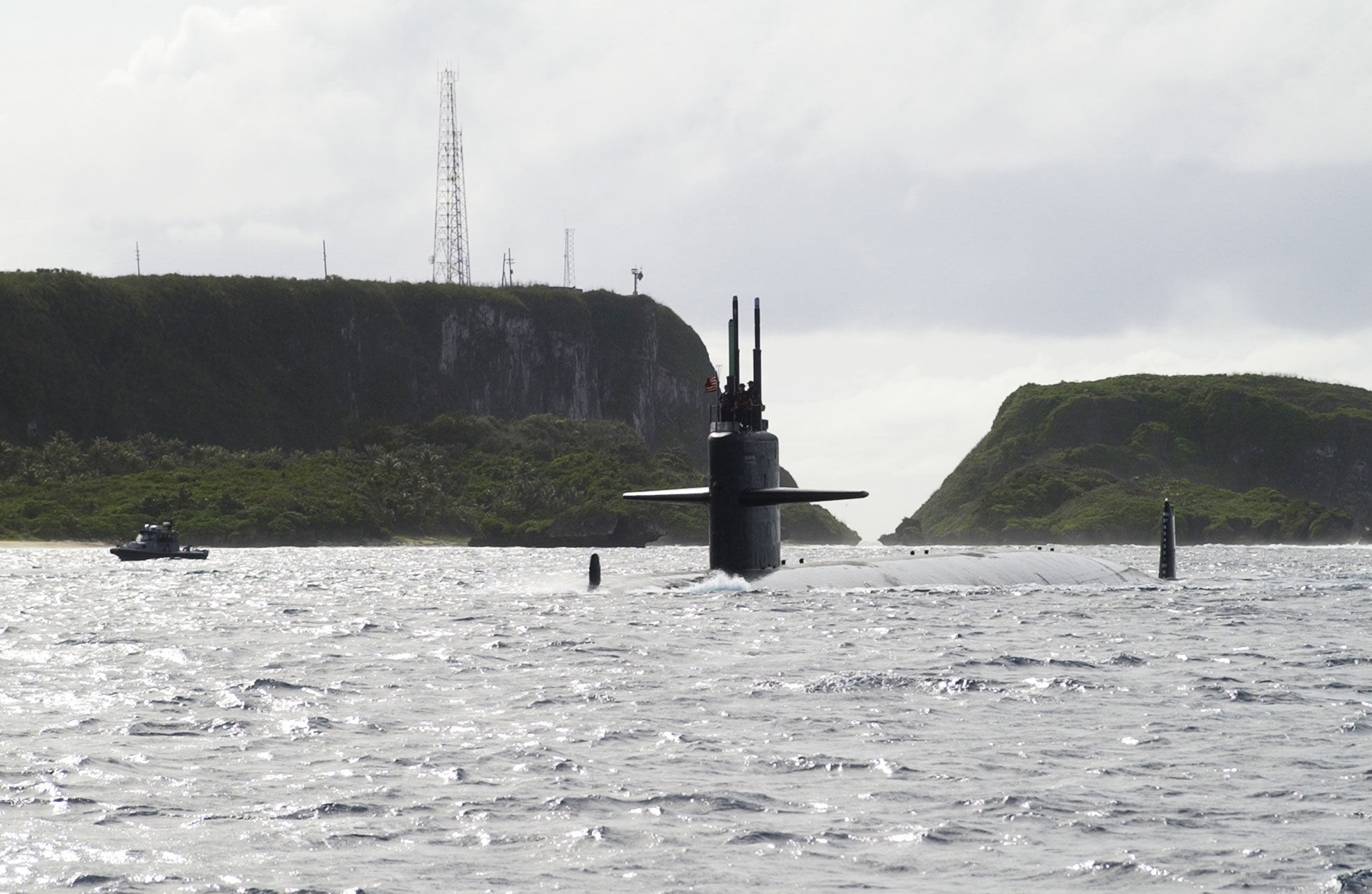 SANTA RITA, Guam (9 jan 2004) — Le sous-marin USS San Francisco (SSN 711) de classe Los Angeles traverse la ligne de la falaise Orote alors qu’il entre dans son port-base de Apra Harbor à Guam. U.S. Navy photo.