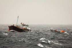 A son arrivée sur place, une équipe de marins du Surcouf a aidé l’équipage du dhow à rejoindre le bâtiment français.