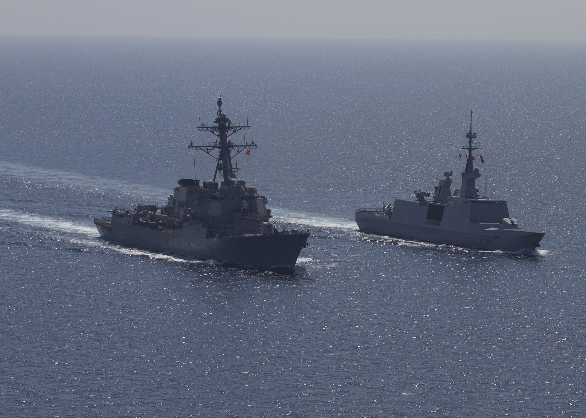 Le 23 octobre dernier, la frégate Aconit et le destroyer américain opération de contre-terrorisme USS Bulkeley ont navigué pendant quelques heures côte à côte, participant tous 2 aux opérations de sécurité maritime et de lutte contre le terrorisme dans le golfe d’Oman.