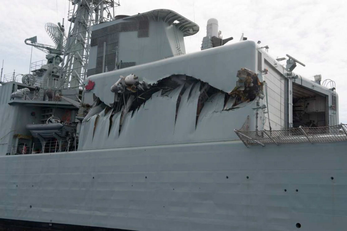La Marine royale canadienne estime qu’il en coûtera trois millions $ pour réparer les dommages causés au NCSM Algonquin dans une collision lors d’un exercice d’entraînement, mais prévient qu’elle ne pourra pas terminer les réparations avant l’année prochaine.