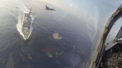Dans le même temps, les 2 bâtiments-amiraux se sont entraînés à naviguer par temps de crise, des avions du Charles de Gaulle simulant des attaques sur les navires de surface.