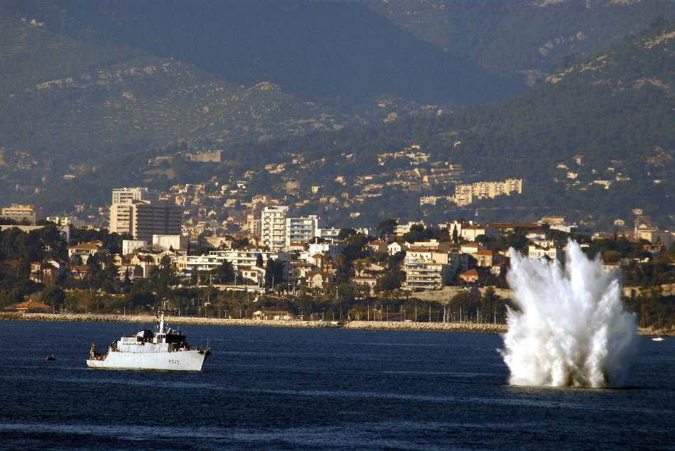 Dans le cadre d’une campagne de dépollution et de contreminage nécessaire avant le début de la saison estivale, le groupe de plongeurs démineurs de la Méditerranée ainsi que les chasseurs de mines Orion et Capricorne sont intervenus du 26 mai au 10 juin 2015 aux abords des communes de Ramatuelle (83), Menton (06), Roquebrune-Cap-Martin (06), Bastia (2B), Porto-Vecchio (2A), Bonifacio (2A), Fréjus (83) et Hyères (83) afin de relocaliser et de traiter 3 torpilles, 3 mines allemandes et italiennes, 2 bombes d’aviation américaines et 22 obus de calibres divers datant de la seconde guerre mondiale.