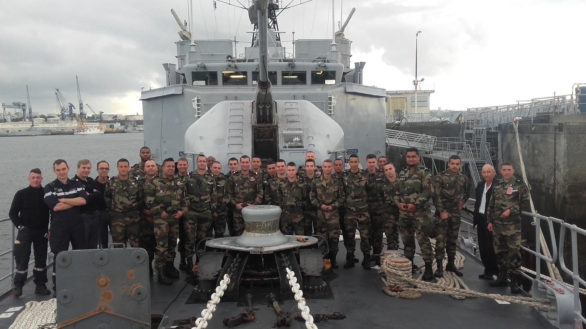 Le 12ème Régiment de Cuirassiers de l’Armée de Terre est venu visiter le patrouilleur de haute mer Lieutenant de Vaisseau Le Hénaff. Arrivés dans la région quelques jours auparavant, les hommes du 12ème ont profité du temps qui leur était accordé pour visiter quelques structures et bâtiments de la Marine nationale.