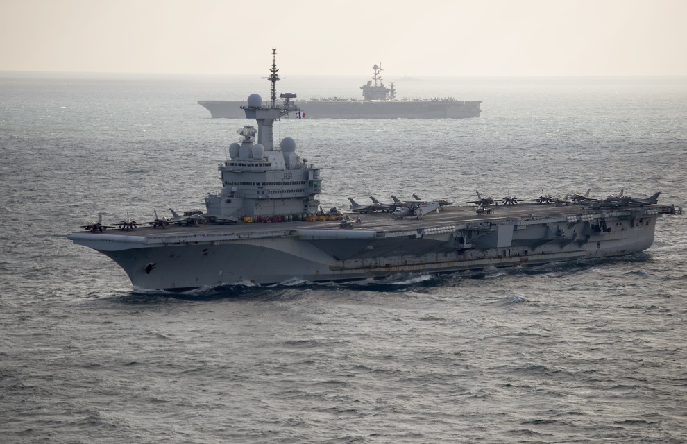 Le 30 janvier 2016, le Rear Admiral (contre-amiral) Batchelder, commandant du Groupe aéronaval (GAN) américain n°8 dans le Golfe Arabo-Persique, a été reçu sur le porte-avions Charles de Gaulle par son homologue français, le contre-amiral Crignola, commandant le GAN français.