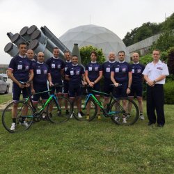 Une équipe de cyclistes de la Royal Navy et de la marine nationale se préparent à parcourir la route suivie par les Forces Alliées qui ont participé au débarquement du 6 juin 1944 et à la libération de Paris.