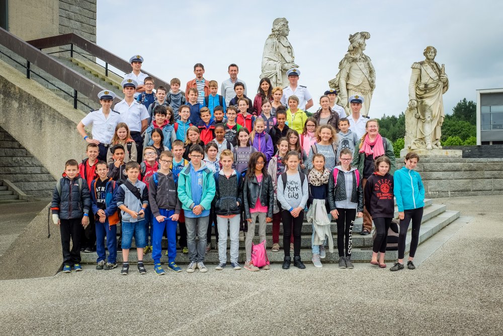 45 élèves de CM2 et 5 enseignants de l’école Marie Curie de Châteaulin sont venus ce mardi 28 juin à l’École Navale avant de se déplacer par transrade à la base navale de Brest. Après une présentation des missions de la Marine Nationale, les enfants, encadrés par des élèves-officiers de la promotion EN2015, ont pu déambuler dans le hall Neptune, visiter le Borda, apprécier le musée avant de tenter des manœuvres au simulateur de navigation.
