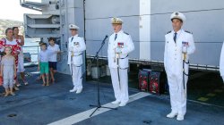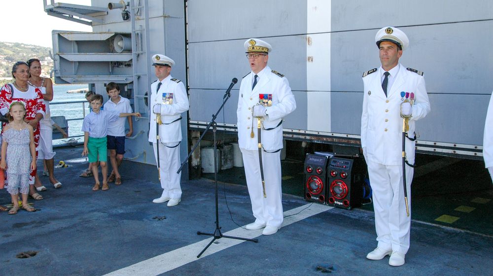 Première cérémonie à bord du bâtiment ravitailleur de forces Émile Bertin
