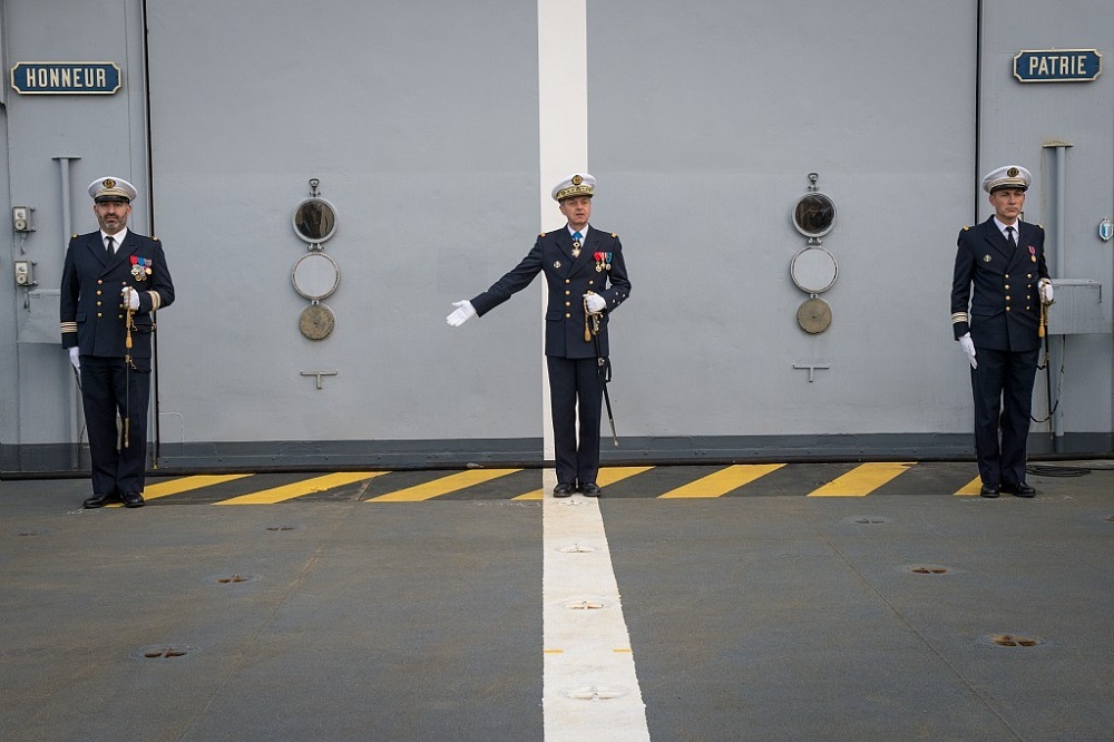 Première cérémonie à bord du bâtiment ravitailleur de forces Émile Bertin