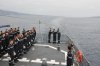 De la gauche vers la droite, le commandant du Mistral, le commandant de l’Ecole Navale, le préfet maritime, commandant en chef pour la Méditerranée, le commandant de la force d’action navale, le commandant du Courbet