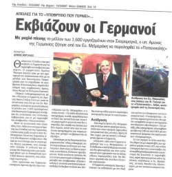 En particulier, à propos du chantier Skaramangas, il a déclaré que : “Nous sommes très intéressé par la question des chantiers parce que tous les postes sont occupés par des Grecs. Par conséquent, je crois qu’un incident isolé comme celui de (l’acceptation du sous-marin Papanikolis), dont je suis certain et j’espère qu’il sera résolu, ne constituera pas un obstacle pour la future coopération avec les chantiers”.