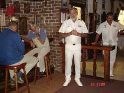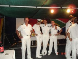 En retour, le Cdr Jones a invité l’équipage Français le 12 avril à Dockyard Arms. Le commander a commencé par un discours de bienvenue qu’il a terminé par : “C’est un grand plaisir de vous rencontrer et je ne vous souhaite rien sauf le meilleur pour la fin de votre voyage.” Le dîner a été servi et les marins Français ont apprécié le meilleur “Hot Curry” de Durban.