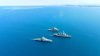 Pour la première fois, les trois avions de guet aérien Hawkeye de la flottille 4F à bord du porte-avions Charles de Gaulle