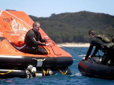 "L’entraînement est assez réaliste, bien sûr dans un environnement contrôlé, nous le rendons aussi sûr que possible — nous le faisons dans de l’eau douce, plutôt que de l’eau de mer, que nous chauffons à 34°, donc c’est agréable et confortable pour les stagiaires."