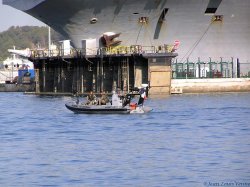 Le 31 juillet dernier, le Charles de Gaulle entrait au bassin. Voici des photos prises depuis la mer.