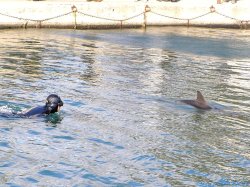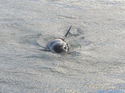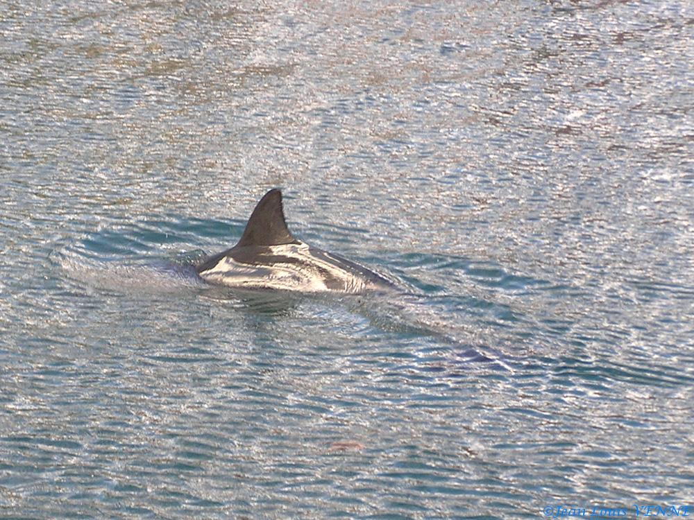 La dernière image montre un dauphin dont le museau semble assez court. Il s’agirait donc d’un Grand Dauphin (Tursiops truncatus) ou d’un Dauphin de Risso (Grampus griseus).