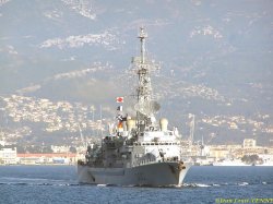 Deux bâtiments brestois, un chasseur de mines et une frégate, de passage à Toulon