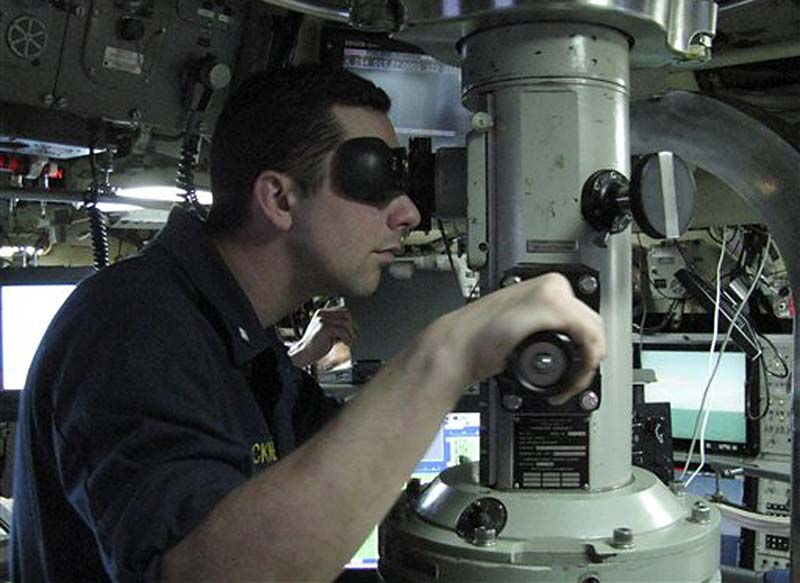 Un membre d’équipage regarde par le périscope de l’Ohio. L’Ohio ressemble à la version clandestine et sous-marine d’un porte-avions, avec à la fois une importante puissance de feu et la possibilité d’aller rapidement là où on a besoin de lui. © NavyTimes