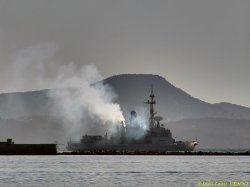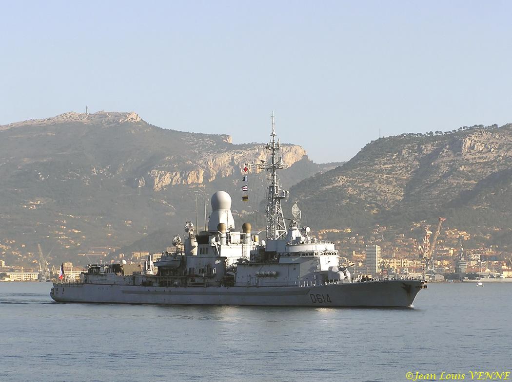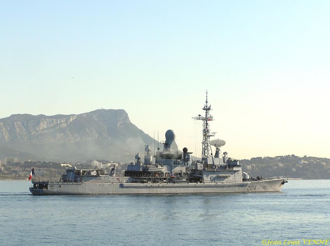 Départ en mission lointaine du Cassard, vendredi matin. Dernière image : rencontre au loin entre le Cassard à gauche et le Forbin qui rentre au port.