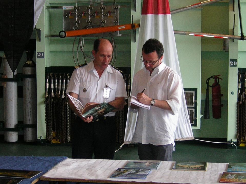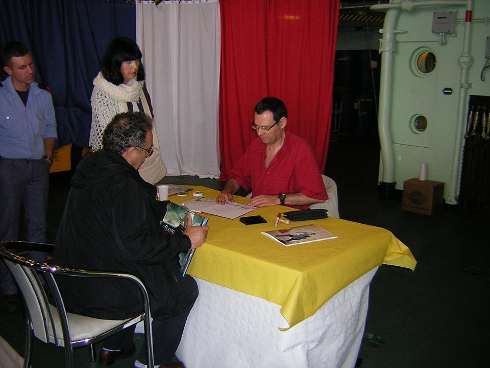 Le festival se déroule à l’initiative du commandant de la Foudre, le capitaine de vaisseau Gué. Mais ce n’est pas le seul "fana" du bord. Le nombre de marins visitant le festival le prouve. Un maître principal avait réussi, depuis 1985, à rassembler plus de 80 dédicaces sur son livre d’or, et il attendait pour obtenir celles des 5 auteurs présents.
