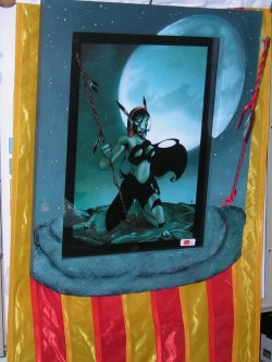 Elle réussit à nous faire oublier la frontière entre la planche de bande dessinée et l’encadrement qui la met en valeur. Les tableaux présentés sont tous merveilleux, non seulement très bien réalisés sur le plan de la technique d’encadrement, mais aussi sur le plan artistique.