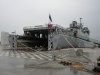 A La Réunion, le chantier naval Piriou débute avec le bâtiment de soutien Champlain un premier arrêt technique sur le dock flottant