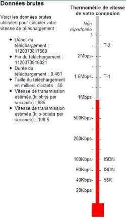 En effectuant des calculs avec ces sites, on trouve des mesures très variables (sans qu’on puisse toujours dire pourquoi la valeur change). Tous ces sites ont les mêmes inconvénients : – ils ne mesurent pas la bande passante de votre connexion ADSL, mais la qualité de la liaison entre vous et le serveur utilisé (et en particulier, l’équipement le plus lent : le goulot d’étranglement). Si un équipement fonctionne mal, la mesure en sera affectée. Dans certains cas, la connexion utilisée n’est pas la plus courte (certains FAI utilisent des connexions trans-atlantiques même pour la France). – ils effectuent la mesure sur quelques secondes. Or, le temps d’établissement de la connexion peut parfois être important (10 à 20 % du temps de la mesure).