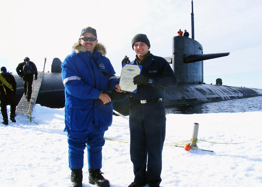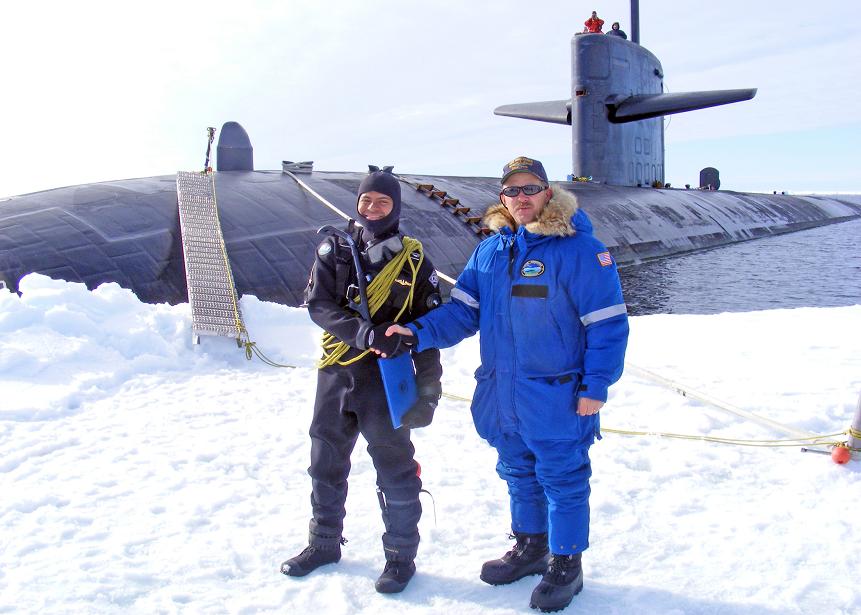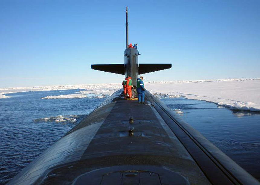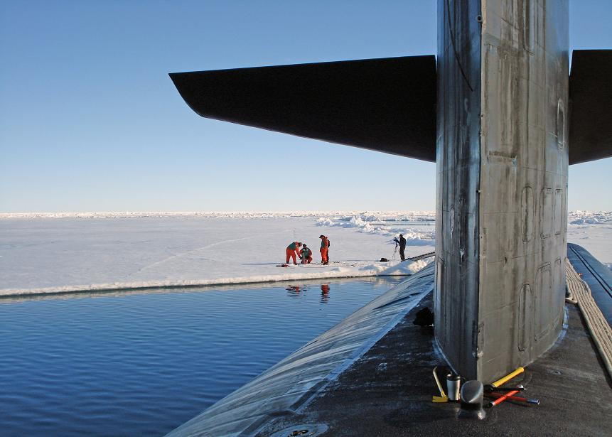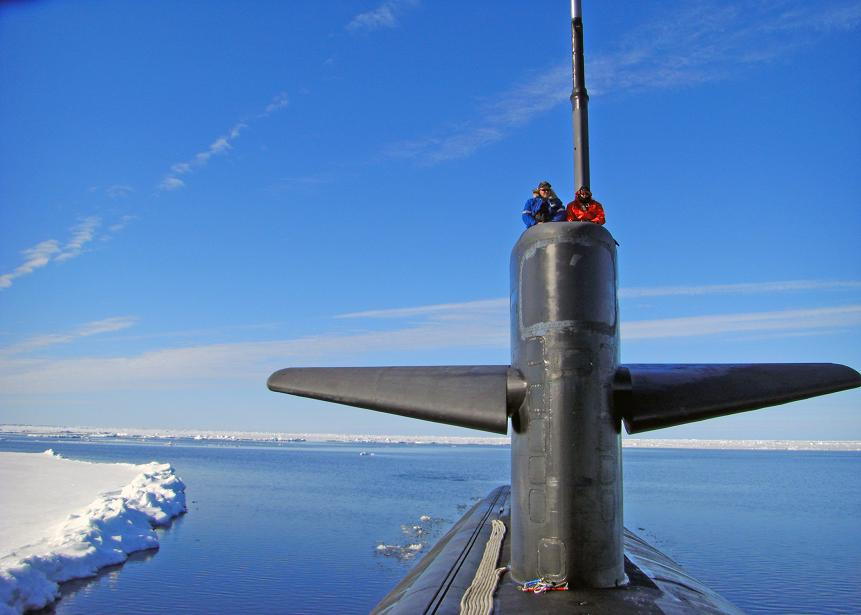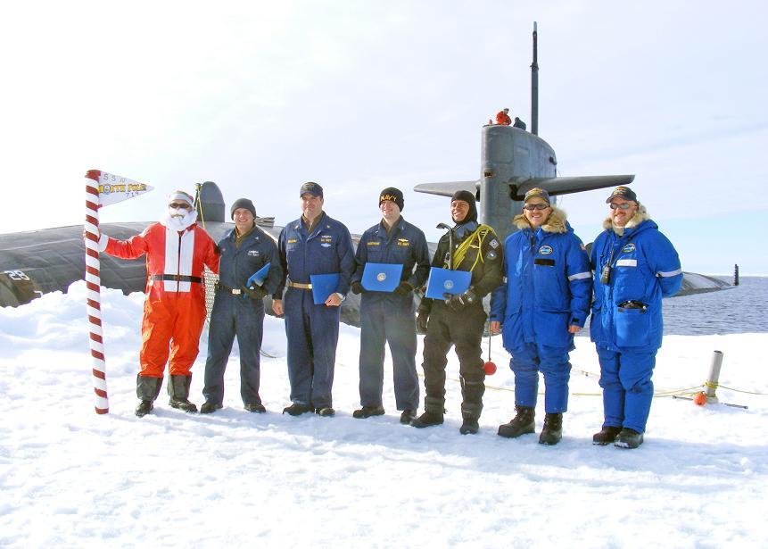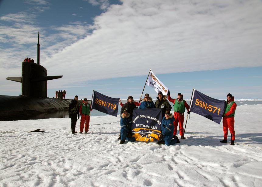 A l’occasion du 50è anniversaire du transit en plongée de l’USS Nautilus sous la banquise polaire, l’USS Providence a fait surface le 1er juillet au pôle Nord.